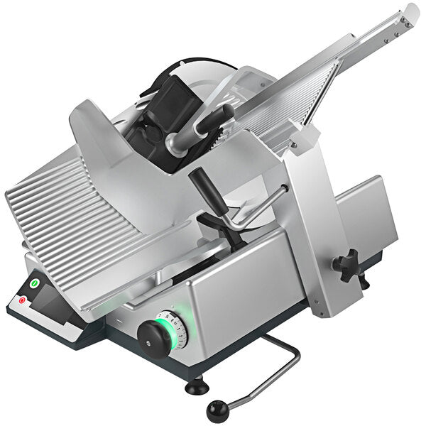 This unit provides a 1/2 hp motor with variable speed from 160-300 RPM for complete control. Its razor-sharp 13" hard alloy blade allows you to quickly slice up your own meats for the perfect signature sandwiches, pizzas, and appetizers. This unit is quiet and comfortable to use, making it the ideal choice for heavy-duty use at the counter or in back of house.