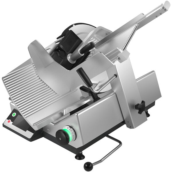 This unit provides a 1/2 hp motor with variable speed from 160-300 RPM for complete control. Its razor-sharp 13" hard alloy blade allows you to quickly slice up your own meats for the perfect signature sandwiches, pizzas, and appetizers. This unit is quiet and comfortable to use, making it the ideal choice for heavy-duty use at the counter or in back of house.